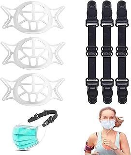 『2021年最新版』マスクフレーム 3個入り- シリカゲル マスクフレーム-息苦しさ解消 インナー マスク ブラケット-通気空間を増やす-化粧崩れ防止-口紅の保護 -通気性 ブラケット+付属品:マスク用フックベルト-長さ調整機能付きマスク痛み軽減ひも*3 (3pcs)