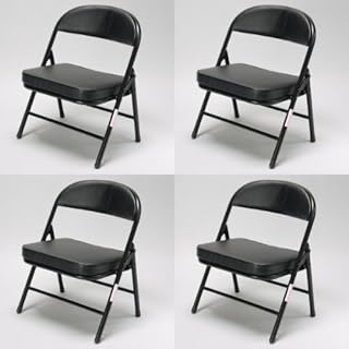 折り畳みイス(座面広め、ブラック色)4脚セット (参考:折りたたみイス折りたたみチェアー折り畳みチェアー黒色)