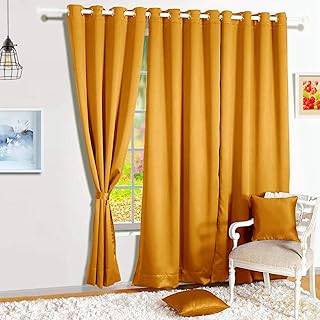 Story@Home Room Darkening Thermal Insulated Eyelet Noice Reducing Blackout Curtain Set of 2 with Tie Back Solid Door Curtain - 7 Feet, Mustard