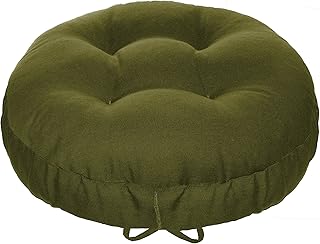 (Olive Green) - 33cm Round Barstool Cushion with Drawstring Yoke - Solid Colour Olive Green Cotton Duck Canvas - Latex Foam Fill - Adjustable Bar Stool Pad