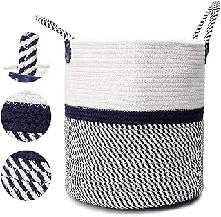 SYH003 ランドリーバスケット 雑貨収納 インテリア 綿麻生地 丸型 洗濯物入れ おしゃれ ロープハンドルが付き 26cm x 26cm