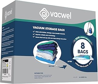 Vacwel ジャンボ真空ストレージバッグ 衣類 キルト 枕 スペース節約 サイズ43 x 30インチ 超強力 (8個パック)