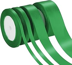 DIY Crafts 4 Rolls 4 Sizes Satin Ribbon Fabric Ribbon Silk Satin Roll for Christmas Day Valentine Crafting Hanging Wrapping (Green) (Design No # 2, 4 Rolls 4 Sizes)