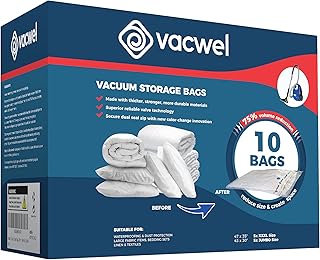(1, 6 Jumbo bags) - Vacwel Vacuum Storage Bags, Extra Strong 110cm x 80cm Jumbo Space Saver Bags for Packing Clothes, Duvets and Moving House (Pack of 6)