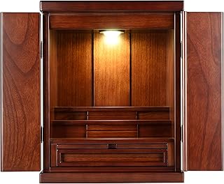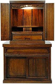 小田工房 ミニ仏壇 家具調 桐製 LED照明付 (ウォールナット色, 16号 収納付き)