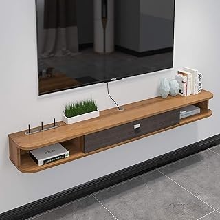ウォールシェルフフローティング棚テレビ棚壁掛けテレビキャビネット引き出し付きセットトップボックスルータースカイボックステレビのリモコンケーブルボックス収納棚 (色 : ウォールナット色)