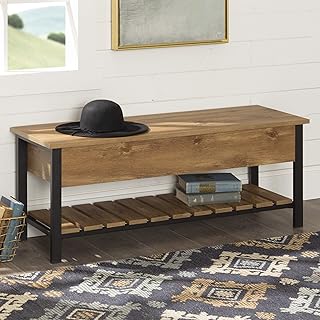 Walker Edison Furniture Company Modern Farmhouse Bench Hidden Entryway Shoe Storage Hallway Organizer, 48 Inch, Barnwood Brown 141[並行輸入]
