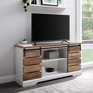 Walker Edison Furniture Company Farmhouse Sliding Slat Door TV Stand Console, 58 Inch, Reclaimed Barnwood 141[並行輸入]