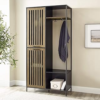 Walker Edison Furniture Company AZT72SLDSB Slat Cabinet Door Metal and Wood Hall Tree Coat Rack with Open Storage, 72, Black/Reclaimed Barnwood 141[並行輸入]