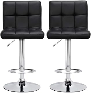 Topeakmart 調節可能モダンバースツール 回転式 PUレザースツール 椅子 背もたれ キッチン アイランドカウンター 高さ調整 回転バー スツール ブラック 2個