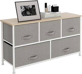 PetierWeit 収納 チェスト タンス 収納家具 リビング収納 ルームケース 布製チェスト衣類収納 洋服チェスト 簡単組立 安定性 (グレージュ) (5引き出し)