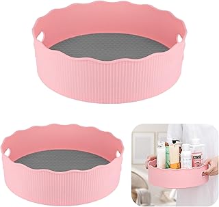 Kalolary 2個 ディーププラスチック レイジー・スーザン ターンテーブル ノンスキッドパントリーキャビネットストレージターンテーブル キッチンキャビネットオーガナイザー 回転スパイスラック キャビネット用ハンドル2つ付き 12インチ&9インチ ピンク