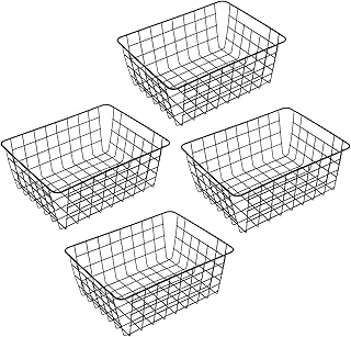 ワイヤー収納バスケット 4個パック メタルオーガナイザー 農家 バスルーム ランドリー パントリー用 [11.2 x 14 x 5.6インチ] ブラック