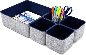 KUBIN オフィス フェルトオルガナイザ 小物収納ケースボックス 文房具化粧品収納 日用雑貨 引き出し小物 (绀)