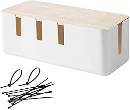 ケーブルボックス & 電源タップ コンセント カバー [ 結束バンド 10本付 ]収納ボックス 配線 隠し ケーブル コード 収納 整理 箱 電源ボックス コンセントボックス 電源ぼっくす 天然木 収納ボックス まとめる 電源 整理 ケーブル 樹脂製 ホワイト [rinda]