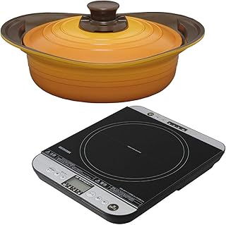 【セット買い】アイリスオーヤマ IHクッキングヒーター 液晶付き 1400W 両側操作パネル IHコンロ 卓上 7段階火力調整 ブラック IHC-T61-B & 両手鍋 無加水鍋 24cm 浅型 ガス火/IH対応 お手入れ簡単 軽量 時短・節約シリコン取っ手・レシピブック付 イエロー MKSS-P24S セット