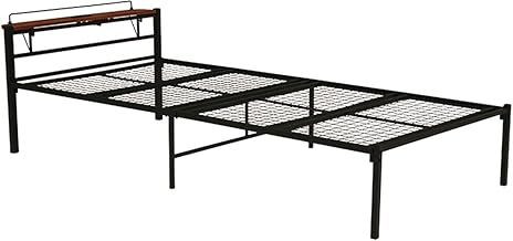 シングルベッド パイプベッド ロータイプ 幅99cm ベッド下収納 スチール アイアン メッシュ床 木製 コンパクト宮付き 2口コンセント シンプル おしゃれ 2カラー 新生活 一人暮らし (ブラック)