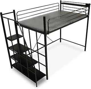 シングルベッドにも分割できる ロフトベッド 階段書棚付きロフトベッド ハンガーバー付 階段 パイプベッド 簡易ベッド 一人暮らし 分割可能 階段付き コンセント付き お洒落 欧米風 ブラック ホワイト (ブラック)