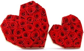 Forever Blossom ハンドメイド プリザーブドローズ ハート型ギフトボックス 枯れないバラ 高級不滅の花 愛する人への永遠の生活の花 女性/お母様/ガールフレンドへのギフト レッド Lサイズ