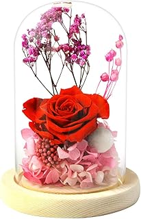 LOVE-F Forever Rose ガラスドーム ハンドメイド プリザーブドリアルフラワーローズ エターナルローズ レディース ユニークなギフト クリスマス、バレンタインデー、誕生日、記念日、母の日、結婚式、パーティーに