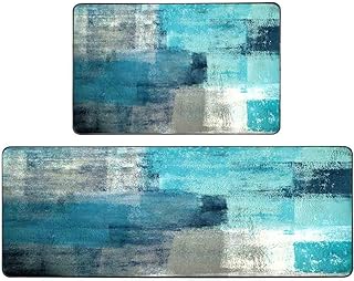 キッチンエリアラグ Gesmatic キッチンラグ マット 17インチ x 48インチ + 17インチ x 24インチ ターコイズグレー 抽象アートペイント ノンスリップ ファームハウス キッチンラグ バスラグ キッチン用