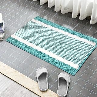 ソフトバスルームラグ 滑らないフラシ天 シャギーマット バスルーム シャワー 浴槽 寝室 トイレ用 (アクア、24インチ x 17インチ)