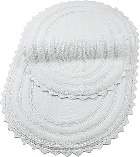 TreeWool バスラグ かぎ針編みボーダー プラッシュコットン リバーシブル - 楕円形(17インチ x 24インチ) ホワイト 2枚セット