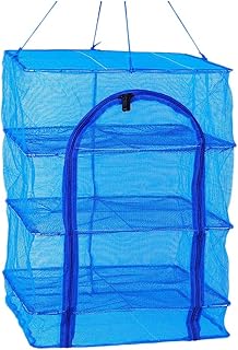 BESPORTBLE 乾燥ラック 4層 折りたたみ式 吊り下げ メッシュドライヤー エビ 魚 果物 野菜 ハーブ 66 x 45 cm バックル付き