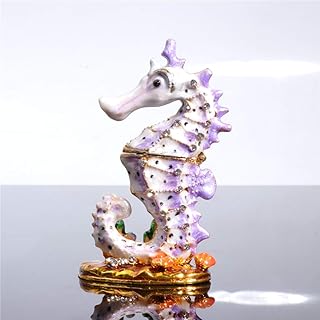 Waltz&F パープル タツノオトシゴ ヒンジ付き小物入れ 宝石で飾られたハンドペイントリングホルダー 動物収集価値のある置物 装飾