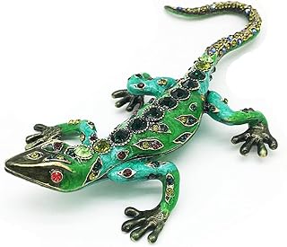 Waltz&F ダイヤモンドグリーン トカゲ ヒンジ付き小物入れ 宝石付き 手塗り リングホルダー 動物の置物 収集価値あり