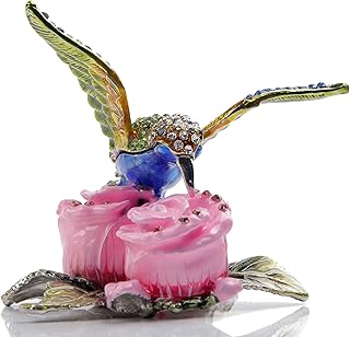ハチドリの置物 ヒンジ付き小物入れ リング用装飾ジュエリーボックス - ピンクの花のハチドリの置物 収集品