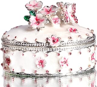 Waltz&F ウィンタースイート&バタフライ ヒンジ付き小物入れ 宝石付き 手塗り リングホルダー 動物の置物 収集価値のある装飾(ホワイト)