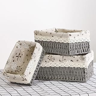 棚用収納バスケット 長方形の整理用織りバスケットセット 取り外し可能なライナー付き 天然シーグラス 装飾ホーム収納箱 (3個セット グレー)