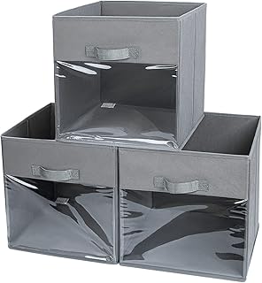 DIMJ キューブストレージビン 3個パック 折りたたみ式ストレージビン 13インチ ファブリックストレージボックス クリアウィンドウストレージシェルフ ハンドル付き オープンストレージビン バスケット キャビネット ワードローブ クローゼット 棚 家庭 オフィス用