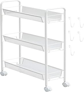 SupEzibuy キッチンワゴン メタルラック キャスター付き 3段 幅27×奥行45×高さ63cm スチールラック 移動式 収納わごん 雑貨収納 すきま収納 防サビ プラトロワゴン 組立簡単 ツールワゴン 小物収納 隙間収納 ラック 収納棚 オフィス/バスルーム/リビング/パントリー/美容室 ホワイト