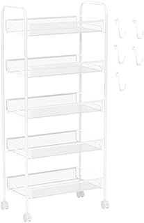SupEzibuy キッチンワゴン メタルラック キャスター付き 5段 幅27×奥行45×高さ105cm スチールラック 移動式 収納わごん 雑貨収納 すきま収納 防サビ プラトロワゴン 組立簡単 ツールワゴン 小物収納 隙間収納 ラック 収納棚 オフィス/バスルーム/リビング/パントリー/美容室 ホワイト