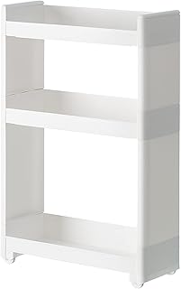 AKEMI キッチンワゴン キャスター付き キッチンラック 収納ワゴン シンク 上 シンク下 収納ラック 隙間収納 大容量 耐荷重 キッチン収納カート 調味料 スパイス ボトル収納 省スペース 台所 リビング バスルーム 洗面台下 トイレ 玄関 収納 棚 2段 3段 ホワイト (スリム3段)